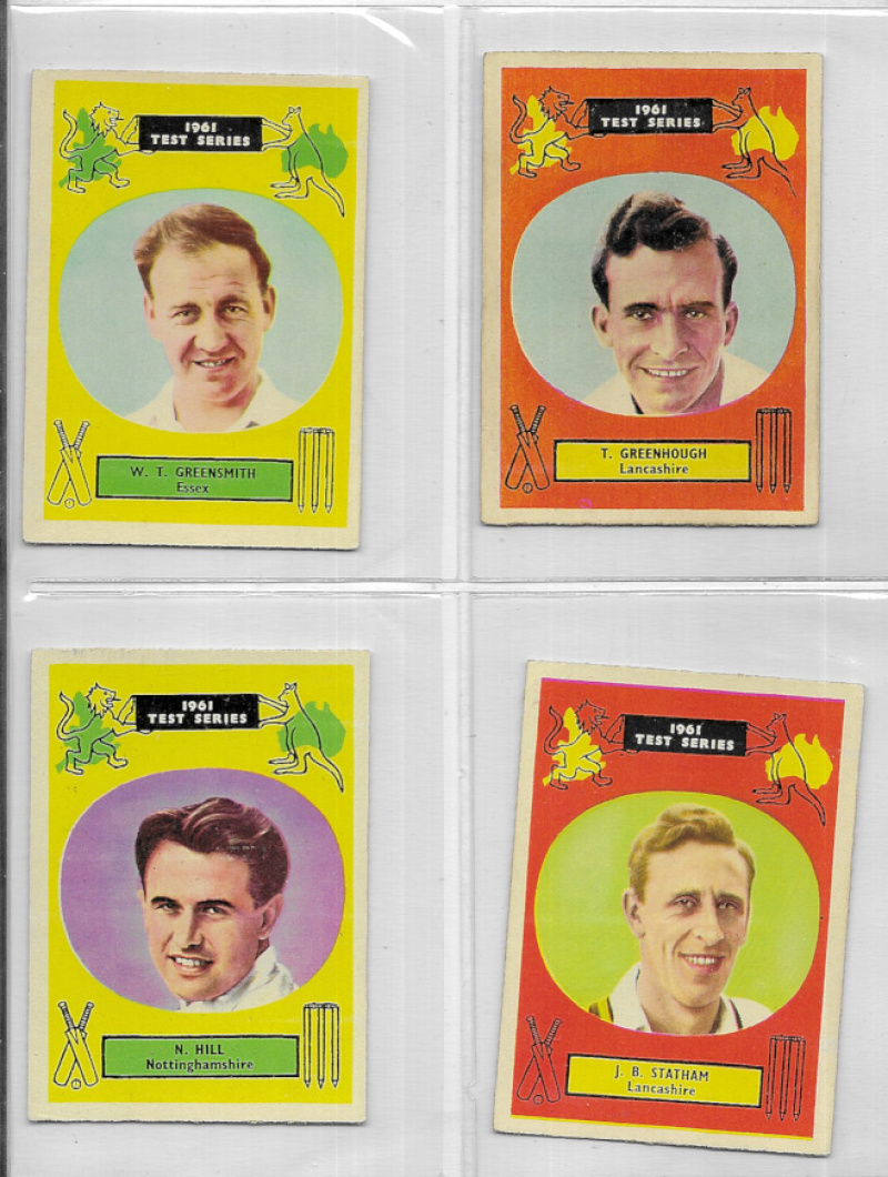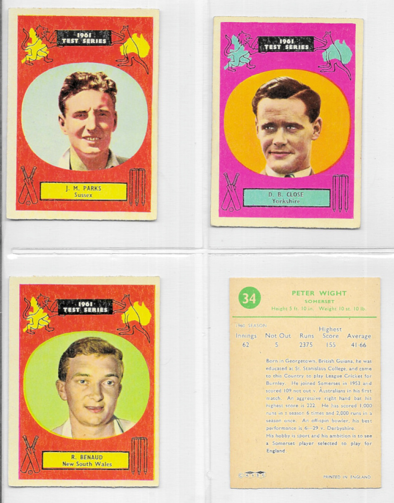 A.& B.C. Gum Cricketers 1961 Test Series, 90 x 64mm, the VG/Fine set of 48