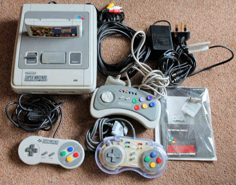 A Super Nintendo Entertainment System with instruction booklet, good condition.