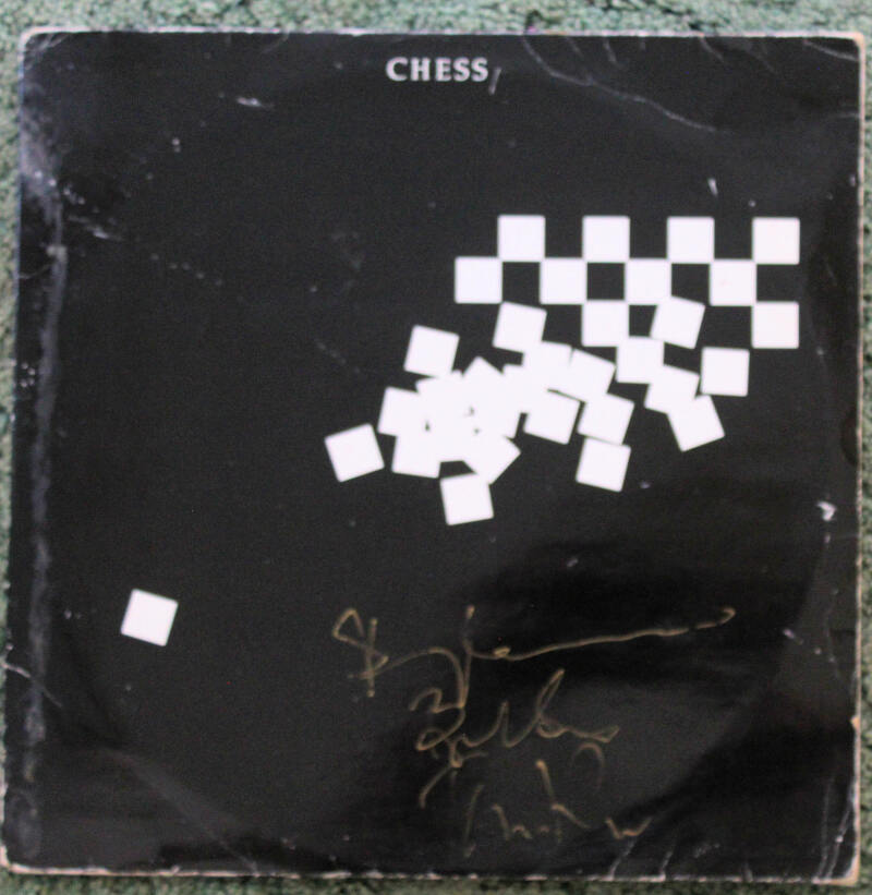 Abba and Tim Rice: a signed record sleeve of the Musical "Chess", signed in gold pen by Benny Andersson, Bjorn Ulvaeus and Tim Rice.