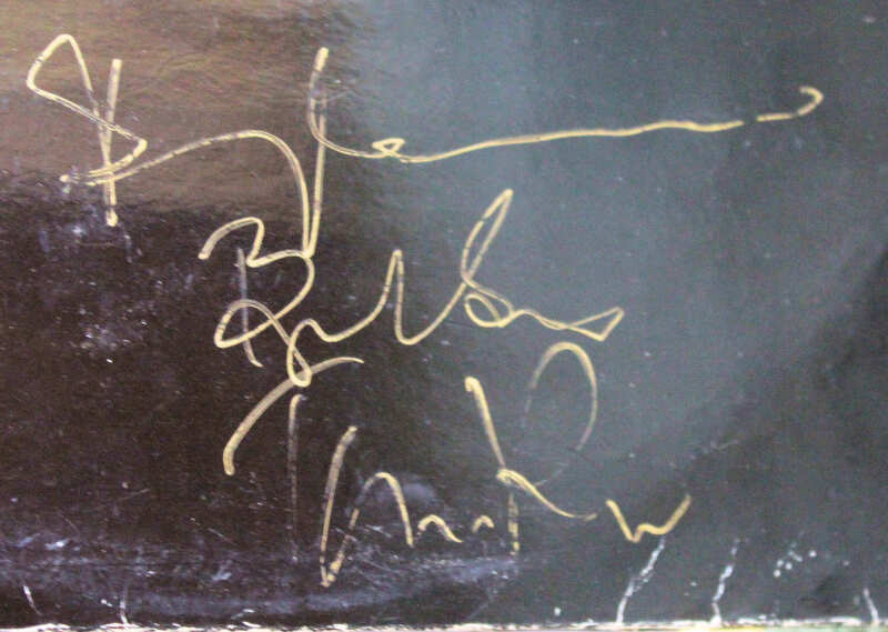 Abba and Tim Rice: a signed record sleeve of the Musical Chess, signed in gold pen by Benny Andersson, Bjorn Ulvaeus and Tim Rice. Some wear and creasing, fair condition. Complete with disc.