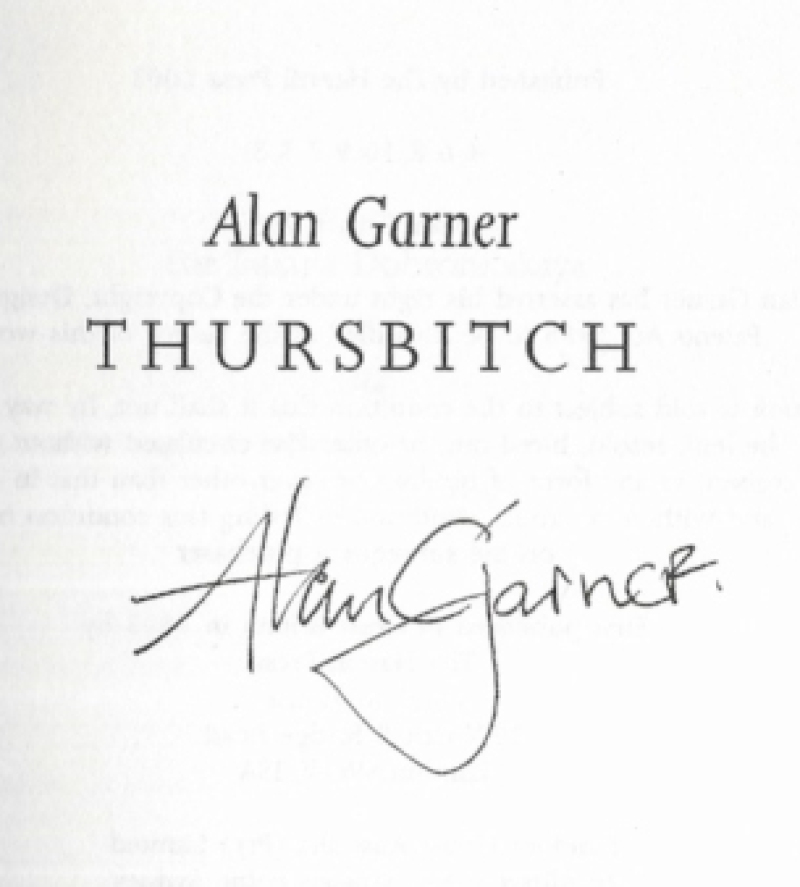 Alan Garner Thursbitch Harvill Press, 2003, 3rd printing, signed by the author on title page, in a fine d/jkt.