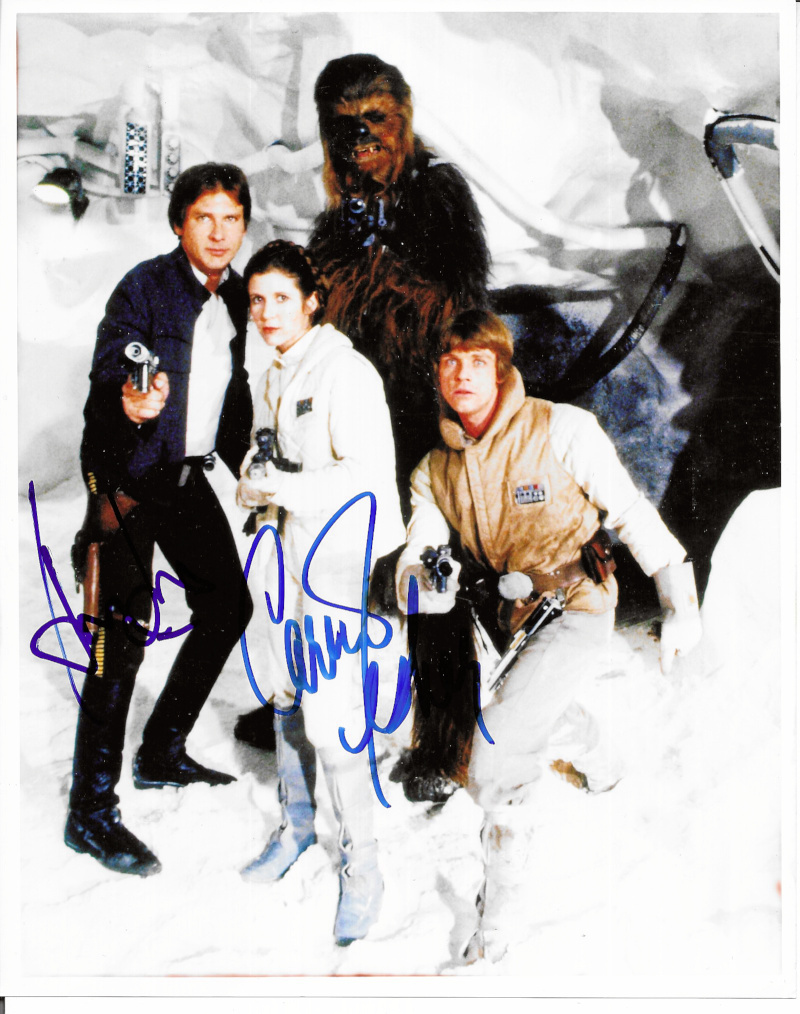 Album of Autographs, mostly 10 x 8” photos including Carrie Fisher & Harrison Ford, Ned Sherrin, George Murphy, Kay Starr, Craig David, and others,