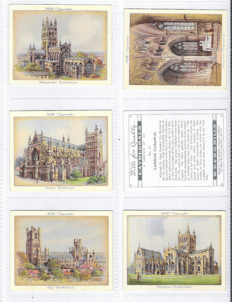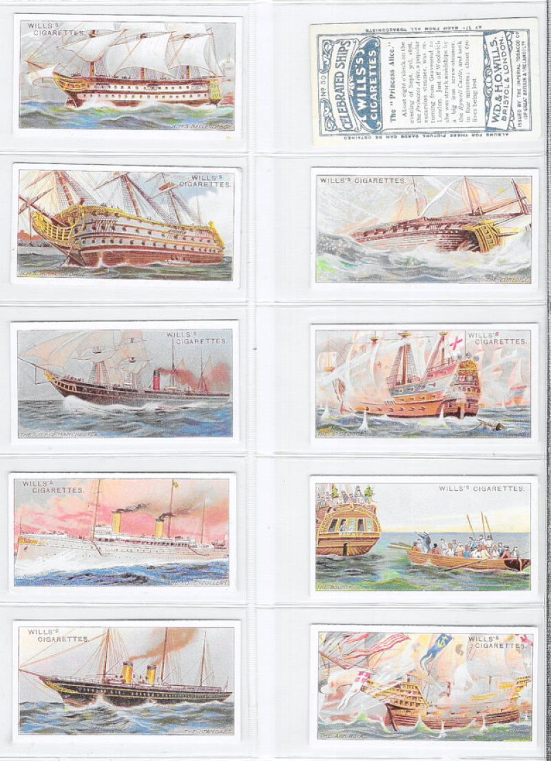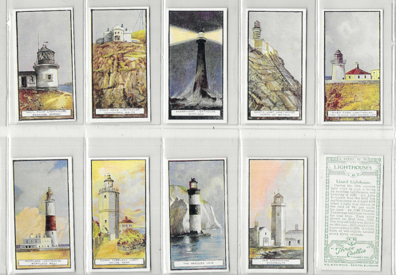 An album of Wills & Churchman sets with several better including Wills' Billiards, Cathedrals, Celebrated Ships, British Castles, Lighthouses (New Zealand issue); and Churchman Famous Railway Trains and Frisky. Good to VF, mostly VG or better. Cat (Murray) £870 (11 sets)