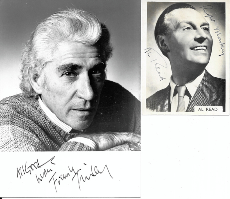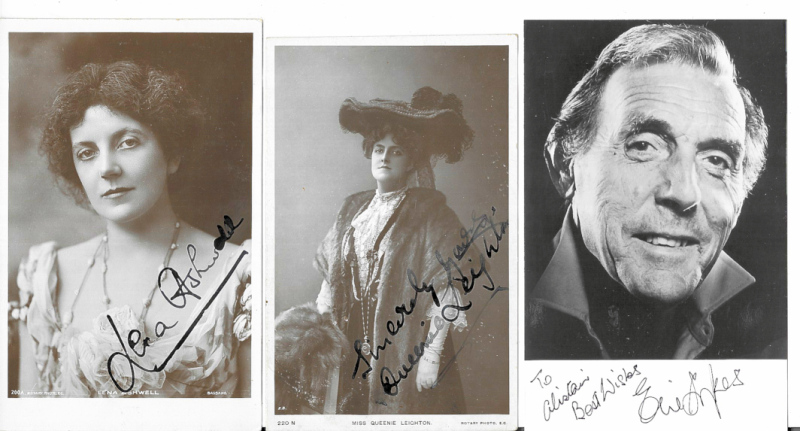 Assorted Autographs, with many signed photos including Eric Sykes, Emma Thompson, Frank Finlay, Al Read, Steve Race, Charlie Chester, Violet Hopson, and Lena Ashwell; also Claire Bloom & Daniel Massey (signed card), signed fliers, etc. (53 items)