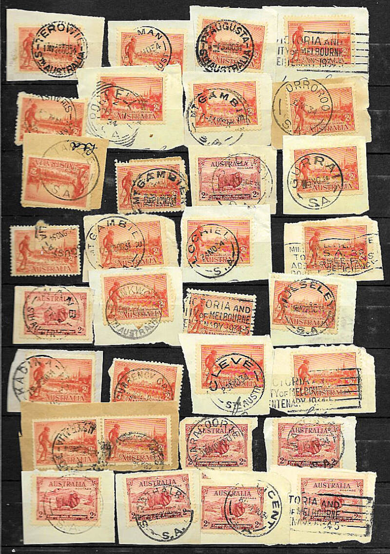 Australia 1930s to 1941 commemoratives, a duplicated used accumulation on piece, many of postmark interest. Good to VF. Mostly GV period. (c.450)