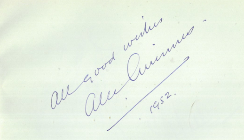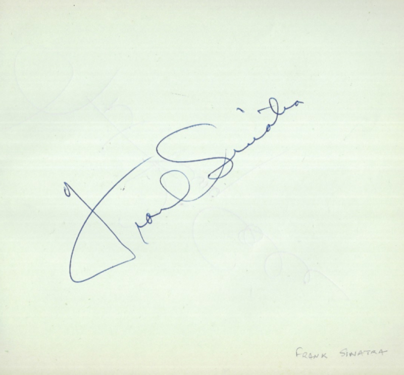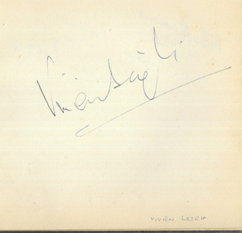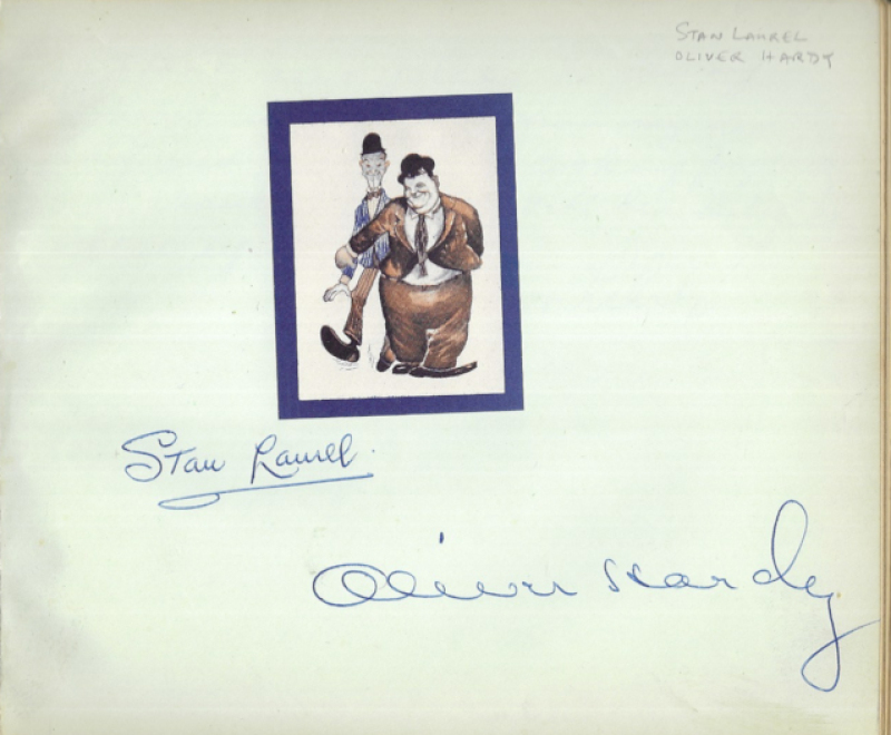 Autograph album, late-1940s/early-1950s, with signatures of Chico Marx, Betty Hutton, Laurel & Hardy, Nat King Cole, Frank Sinatra, Vivien Leigh, Denis Compton, Richard Dimbleby, Betty Hutton, Peter Brough, Al Read, Lena Horne, Eric Portman, Alec Guinness, George Chisholm, Jack Benny, Michael Redgrave, Frankie Lane, Richie Benaud, Neil Harvey, and others. (abt.90)