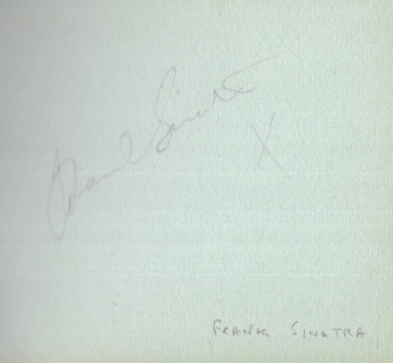 Autograph album with a few signatures including Laurel & Hardy and Frank Sinatra, the latter in pencil and rather faint.