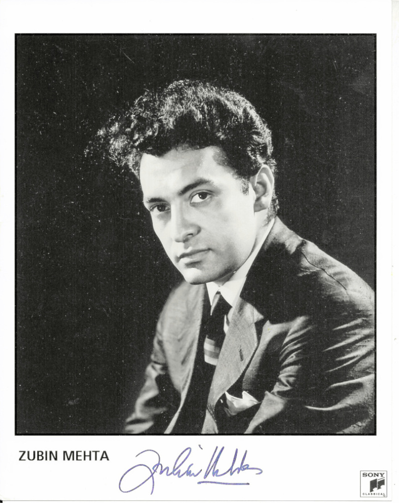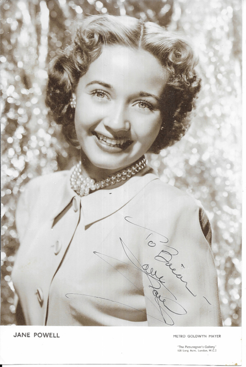 Autographs in folder, with signed photos, letters, programmes etc, including John Glen (director), Zubin Mehta, Peter Cushing (cut signature), Jane Powell, Nanette Newman, Matt Damon, Polly James, and various others. (33 items)