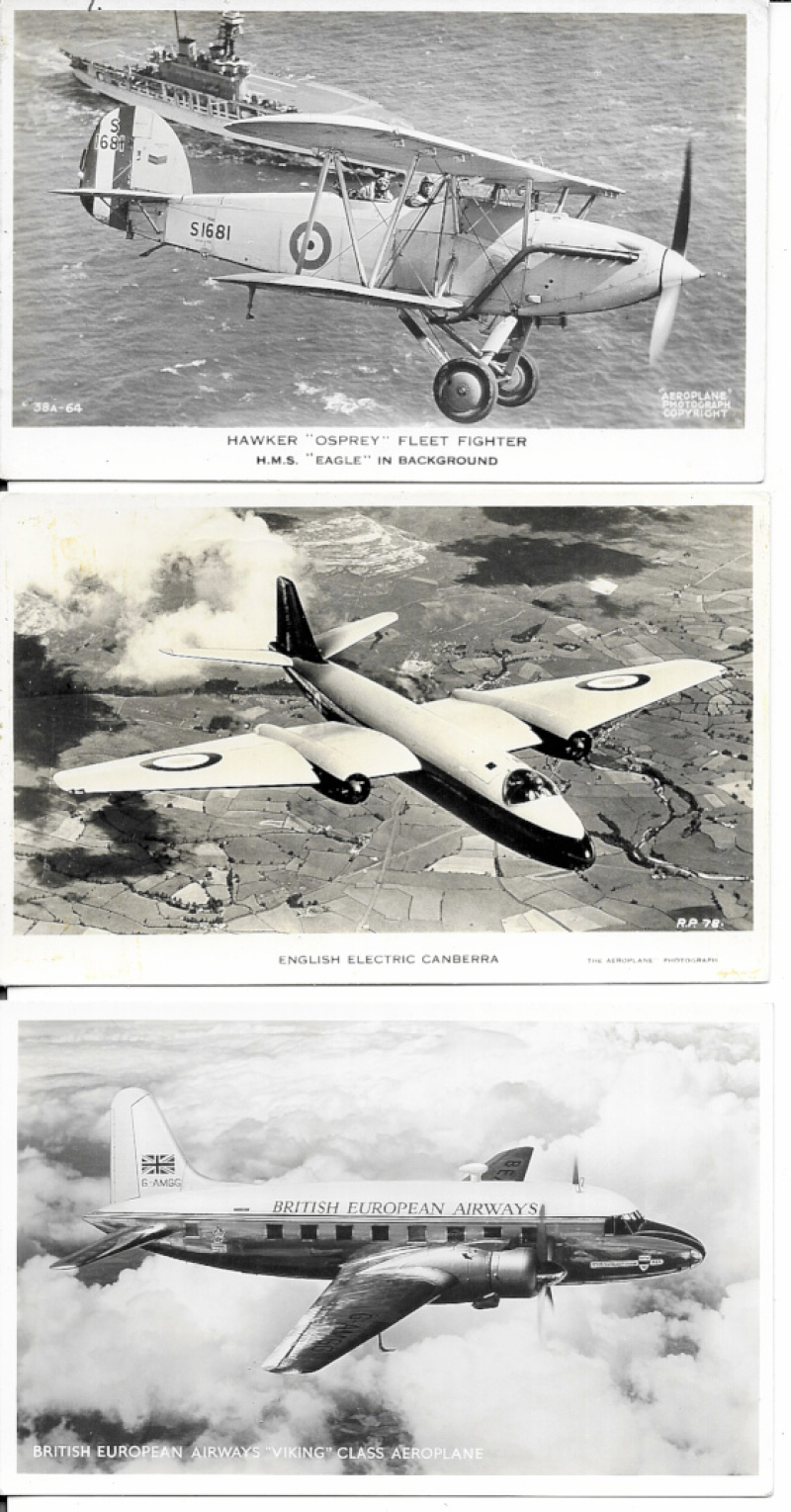 Aviation selection with Tuck Oilettes (6) and other earlies, mid-period bi-planes (5), famous aviators (2), WW2 period and 1950s. Mostly VG/Fine (41)