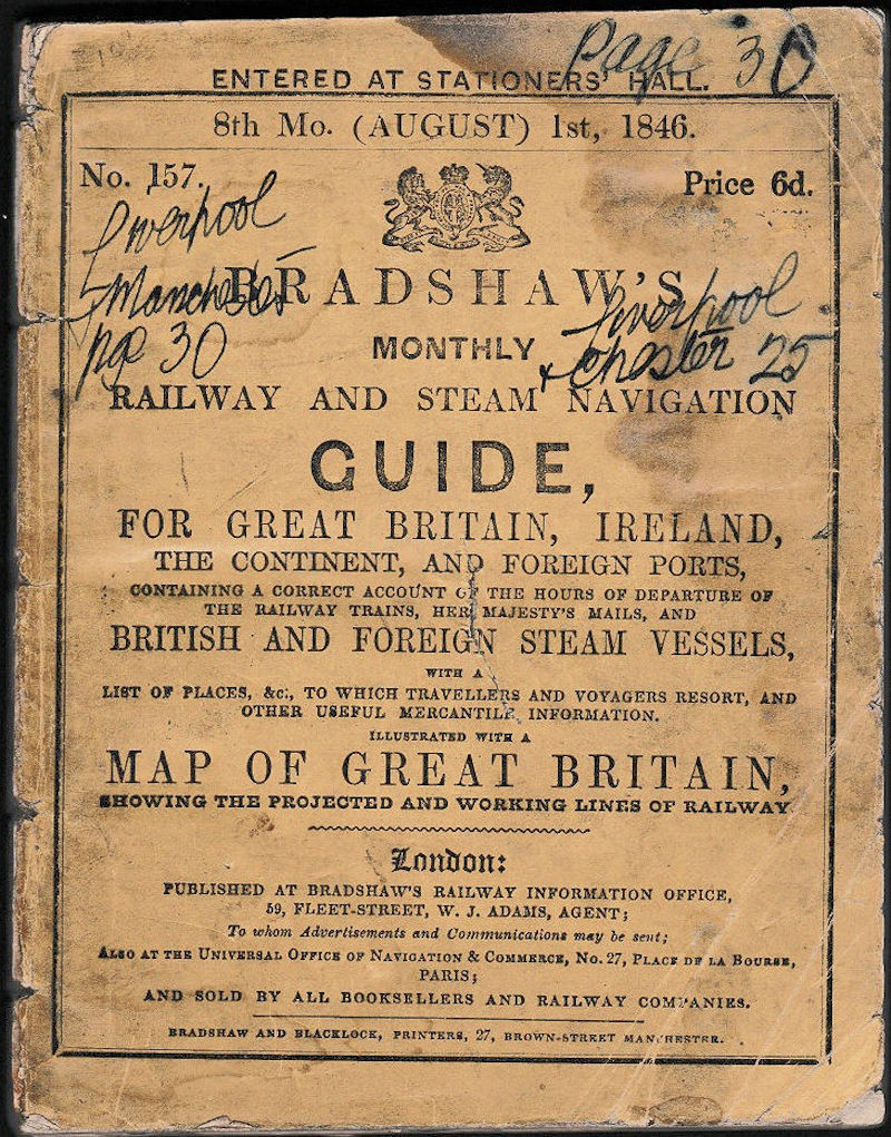 "Bradshaw's Monthly and Steam Navigation Guide" London, August 1846,