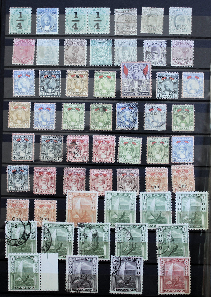 British Commonwealth mint and UM ranges in stockbook with all periods well represented; interest in Zanzibar,