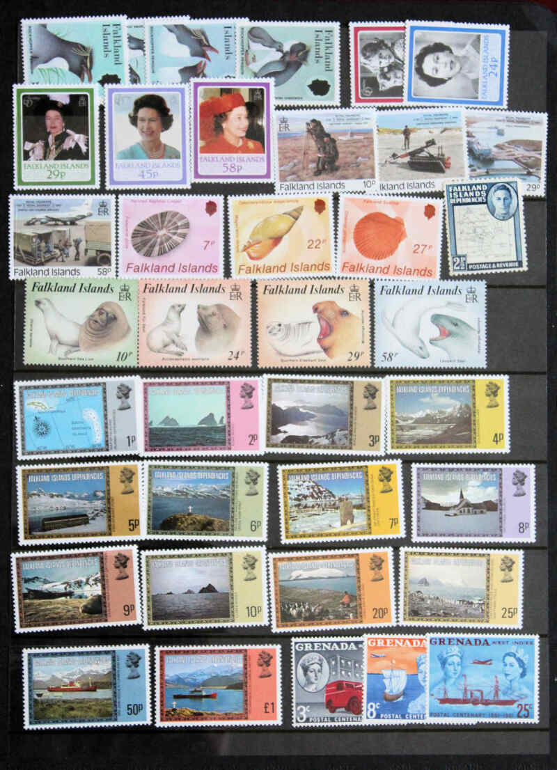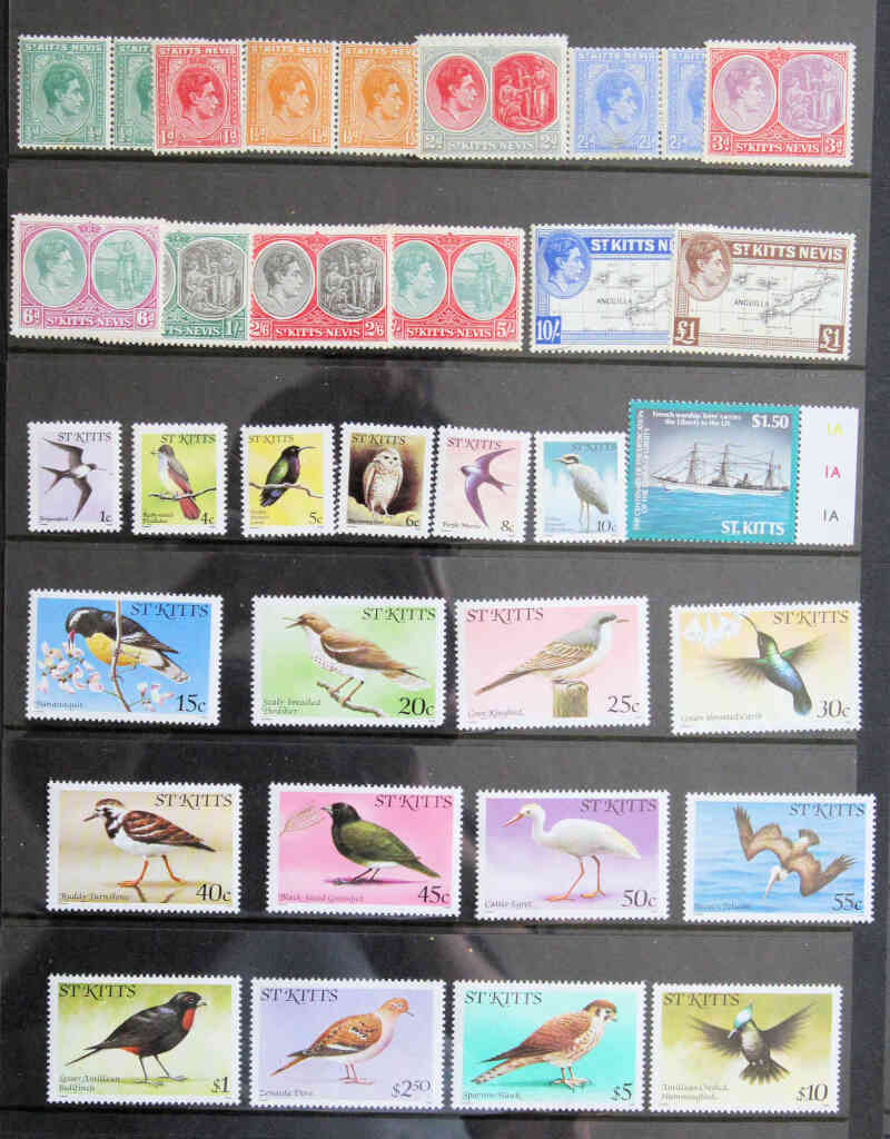 British C/Wealth mint ranges in three binders, high proportion UM, predominantly QE2 but with useful earlier especially GVI (e.g. Aden to 10s and St-Kitts Nevis to £1 UM). Includes much Papua New Guinea, Tristan Da Cunha, Falklands and West Indies. No Australia or New Zealand. (abt.2,500 plus 100 mini-sheets)