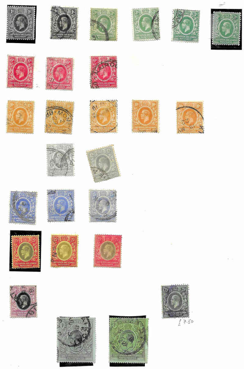 British East Africa mainly used ranges in binder from c.1900, mostly issues for KUT and Kenya, with GV to 1R (2), GVI to £1