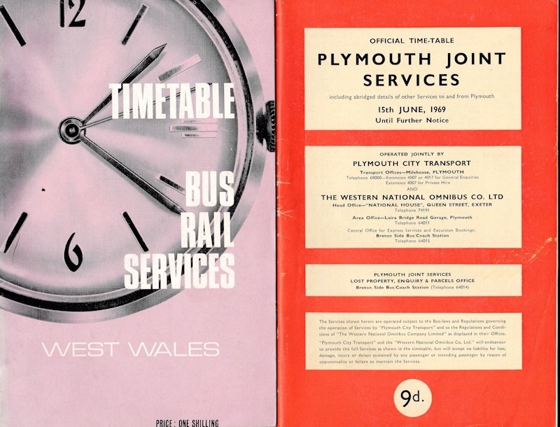 Bus Timetables for Wales (6) and South West of England 1960s and 1970s,