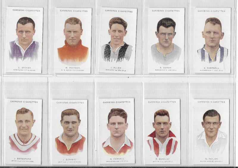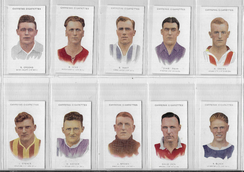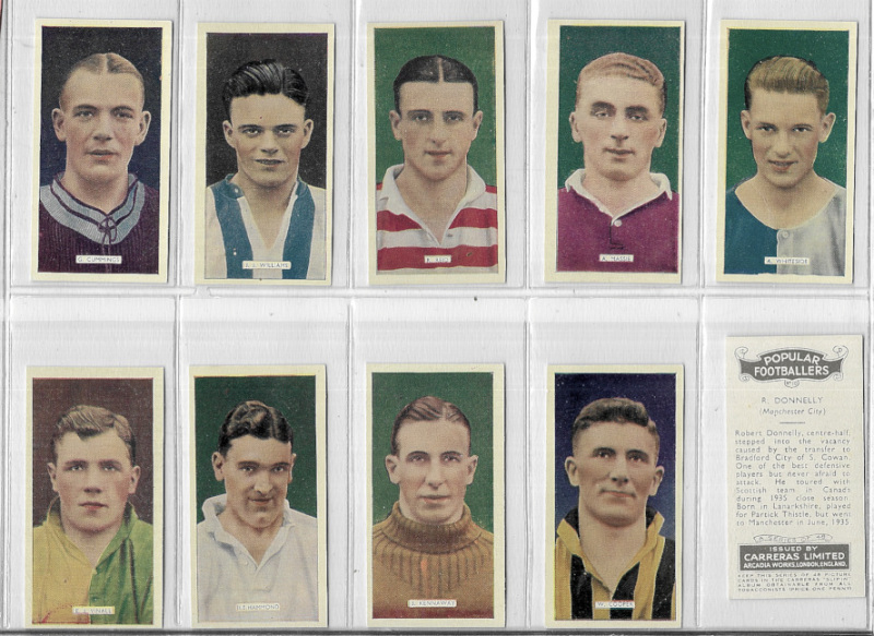 Carreras Footballers 1934, Famous Footballers 1935 (set of 48), and Popular Footballers 1936, all in sets, excellent condition.