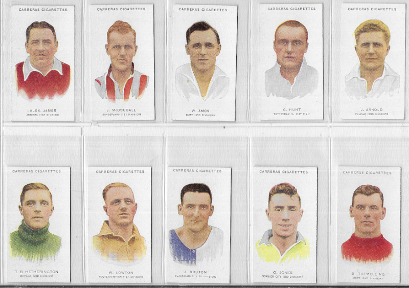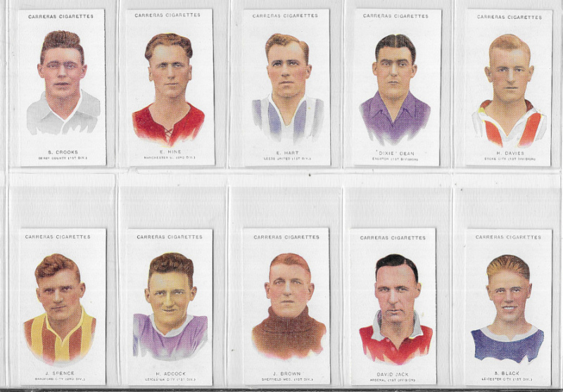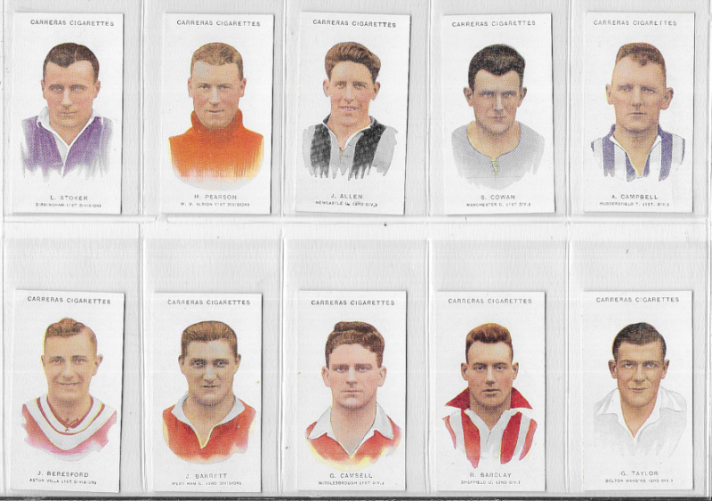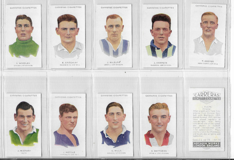 Carreras Footballers 1934, small titles, the set of 75, excellent condition.