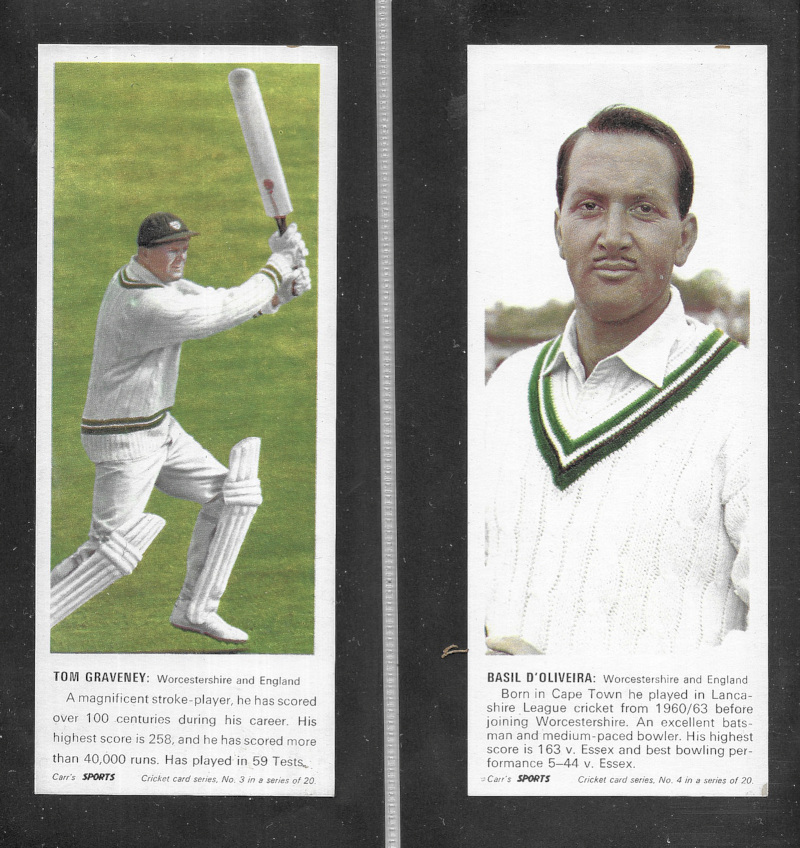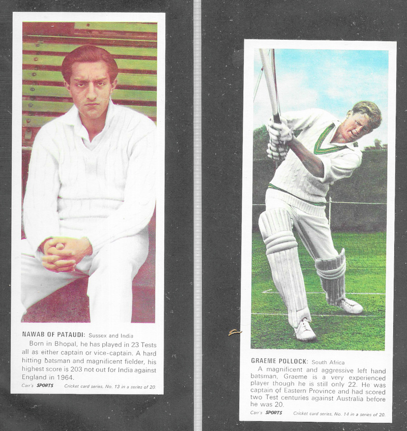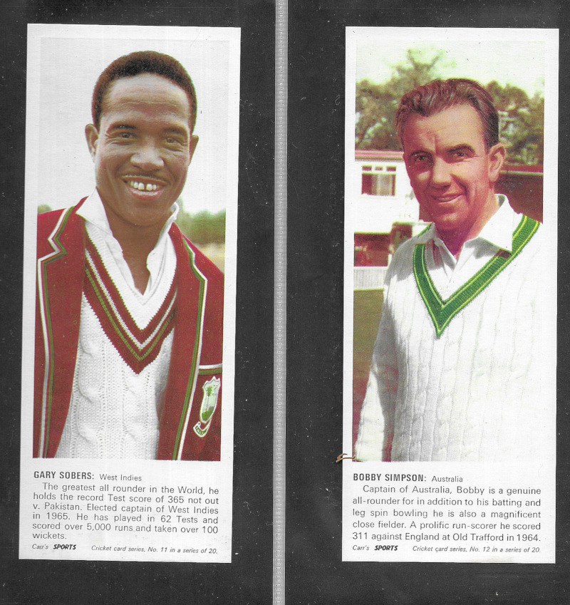 Carr's Biscuits Cricketers 1967, the set of 20, excellent condition, a scarce set.