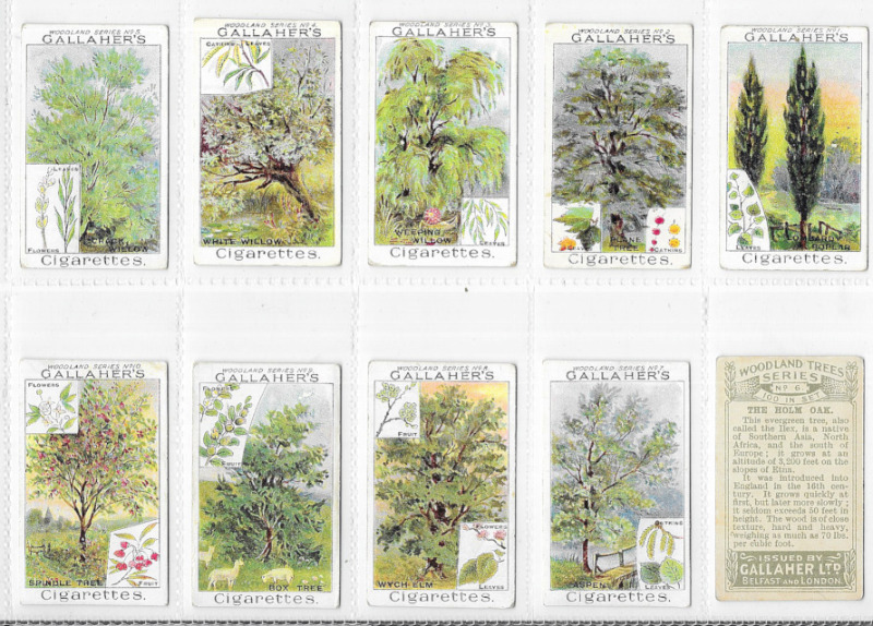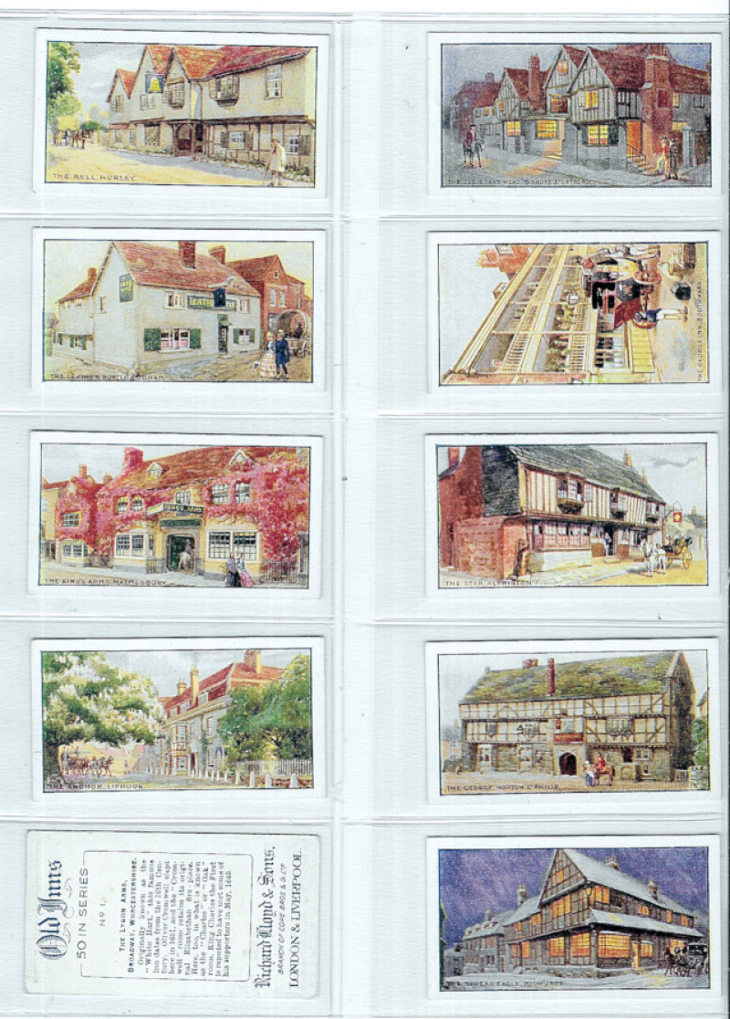 Carton with 30 sets in two modern albums and plastic sleeves including Gallaher Tricks & Puzzles Series 1933, Army Badges and Woodland Trees Series 1912; Lambert & Butler Pirates & Highwaymen and Famous British Airmen & Airwomen; Lloyd Old Inns; Mars Wonders of the Queen Mary; King's Laundries Famous Railway Engines; Wix Builders of Empire; Murray Steam Ships; Ardath Stamps Rare & Interesting; B.A.T. War Incidents; Goodies Indian Tribes; Tetley Tea British Birds (two sets); and other useful including Wix Kensitas Flowers (41, mostly size L), and a pack of plastic sleeves (as new). Generally VG/VF (Large qty).