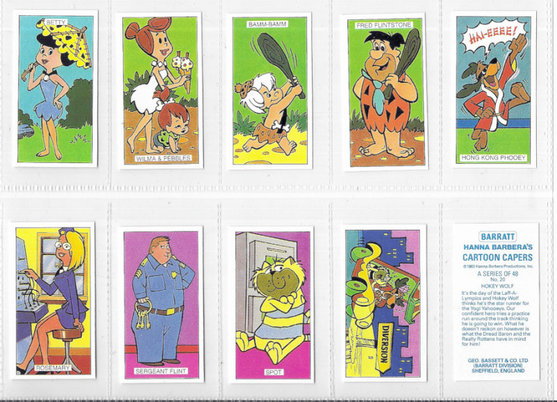 Cartoons/Animations, a selection of nine sets including Weetabix Mickey Mouse's Playmates 1978 (in singles), Como Confectionery Noddy and His Playmates 1962, B. Morris Treasure Island 1924, Topps Spitting Image 1990 (set of 66 incl. checklist), and Bassett Hanna Barbera's Cartoon Capers 1984. Excellent condition throughout. (264)