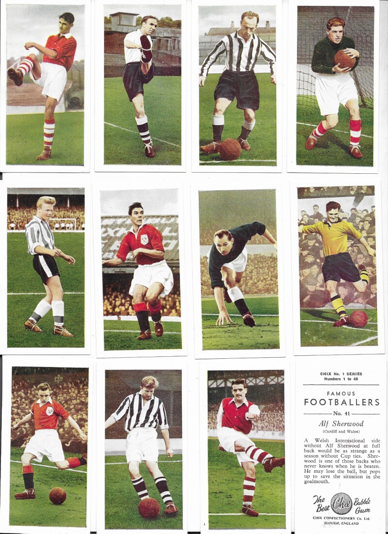 Chix Confectionery Famous Footballers 1955, No.1 Series (inscribed ‘Numbers 1 to 48') a complete set, mostly excellent, #1 marked lower left, couple of others with minor imperfections. #31, 40, 41 with some colour offset on backs. (48)