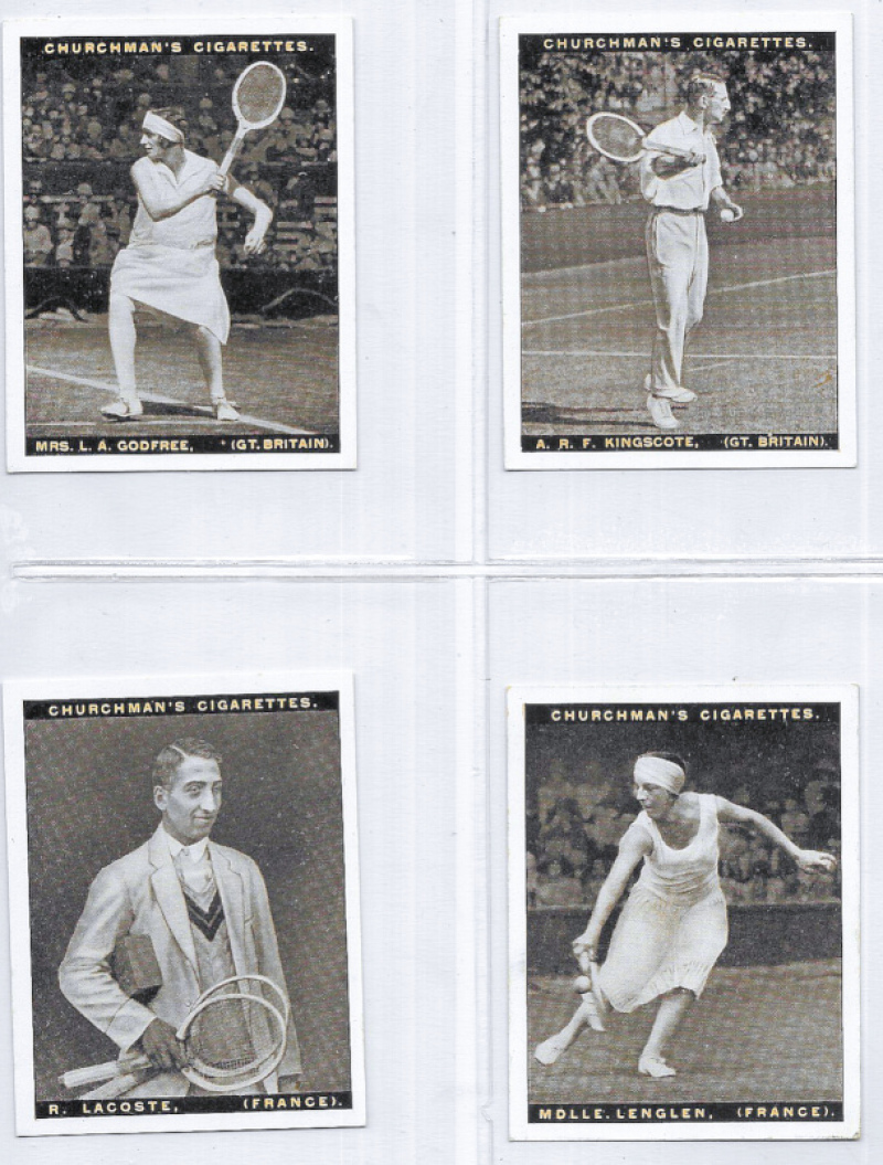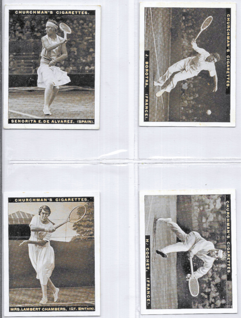 Churchman "Lawn Tennis" 1928, size L, the set of 12, VG to excellent, #8 (Mdlle. Lenglen) with slight wear to one corner,