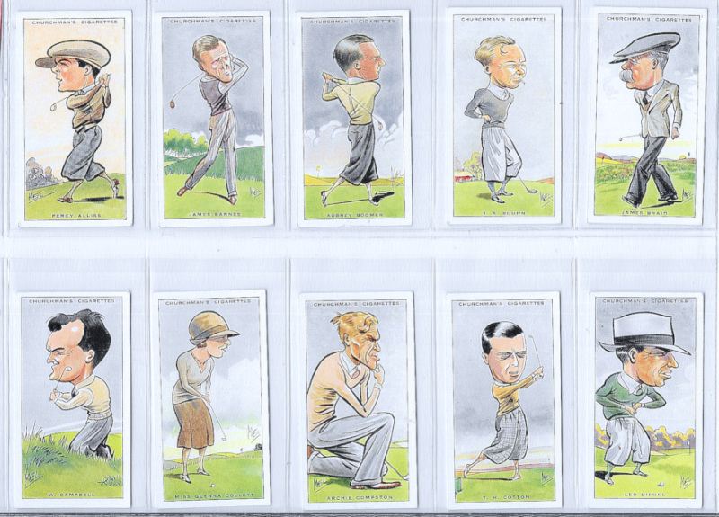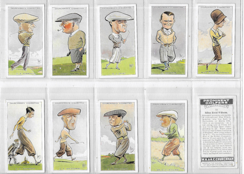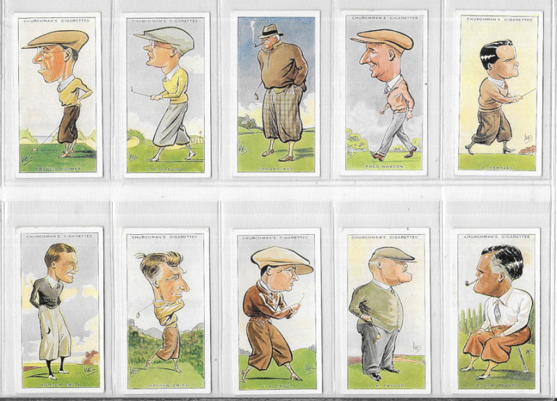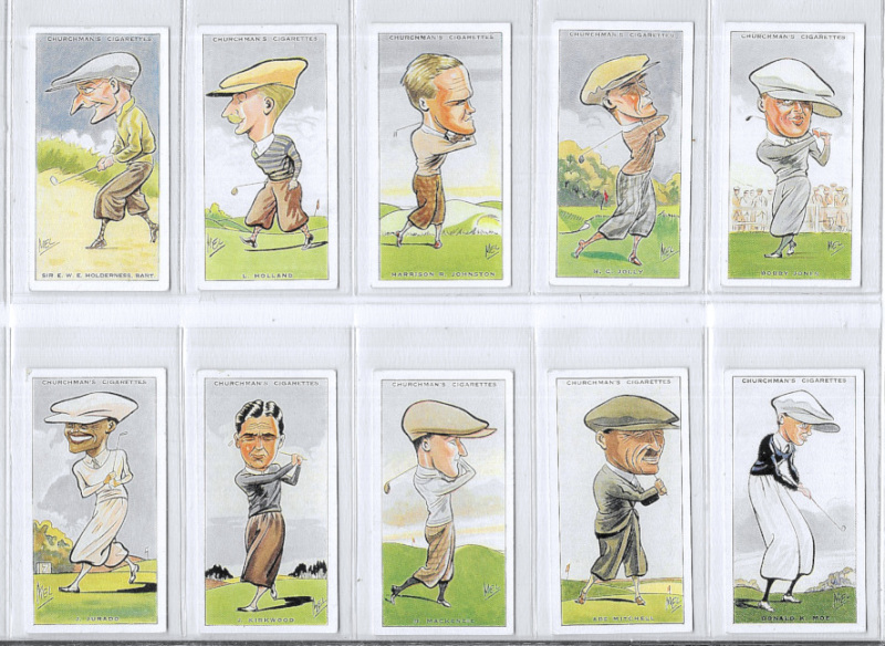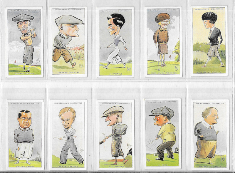 Churchman Prominent Golfers 1931, the set of 50, including Bobby Jones, Harry Vardon, Walter Hagen etc, VG to excellent, some with minor imperfections, #35, 37, 39, 40, 42, 46 & 47 very slightly marked on backs. A scarce set.