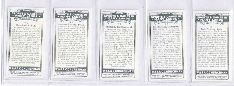 Churchman Sports & Games in Many Lands 1929, the set of 25, including American Football and Baseball. Excellent condition.