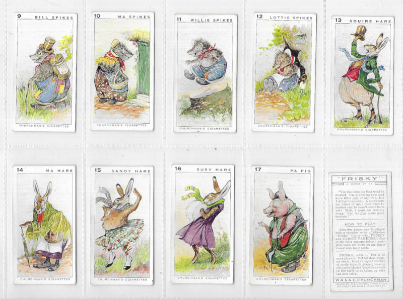 Churchman standard size sets comprising "Men of the Moment in Sport" (#1 stained, others good to VF), "Famous Railway Trains", "Frisky" (fair to fine