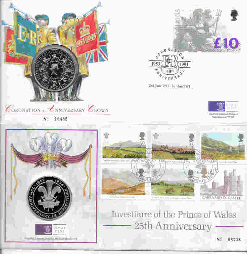 Coin Covers collection, largely UK with coins to Two Pounds (6) and Five Pounds (10 including a Silver Proof), plus two Silver Proof medallions. (35)