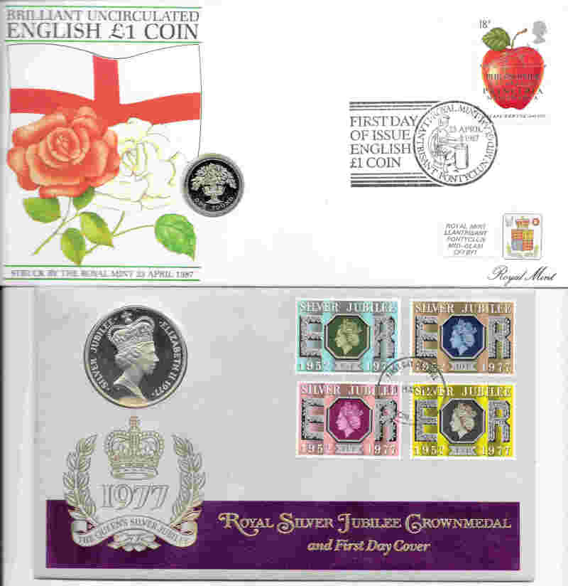 Coin Covers collection, largely UK with coins to Two Pounds (6) and Five Pounds (10 including a Silver Proof), plus two Silver Proof medallions. (35 covers)
