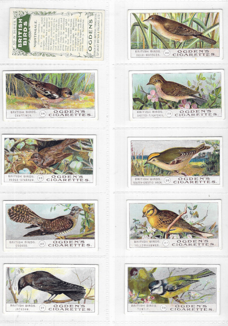 Collection of 13 sets in modern album including Hill The Railway Centenary (standard size, set of 50); Wills Military Motors and Recruiting Posters; Hignett Beauties (Chess cigarettes, set 1); Oxo Mystery Painting; Ogden's British Birds 1905; Mars Famous Aeroplanes, Pilots & Airports; Wills (New Zealand) V.C.s 1926; and various others. VG/VF. Cat (Murray) £825