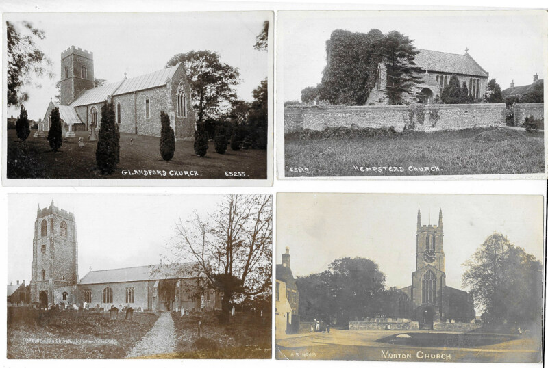 Collection of Churches in vintage album, largely Norfolk with many village & smaller town localities, the majority RPs. VG/VF (145)