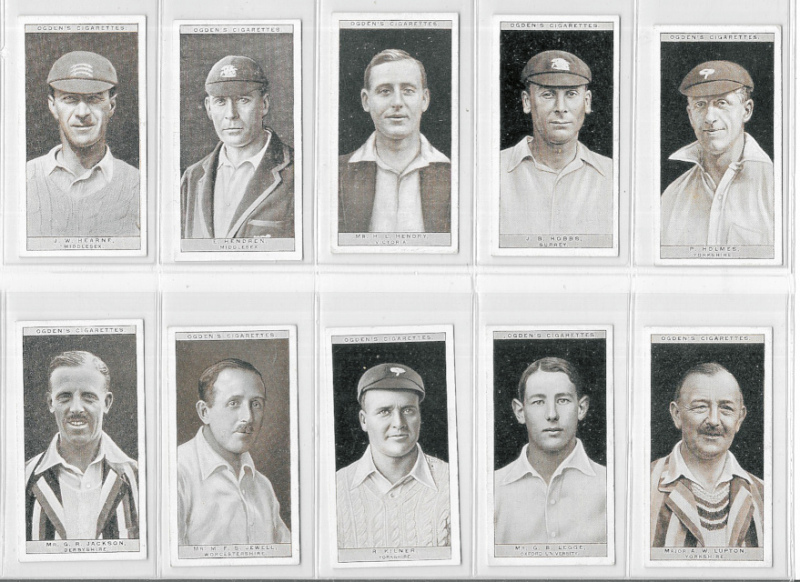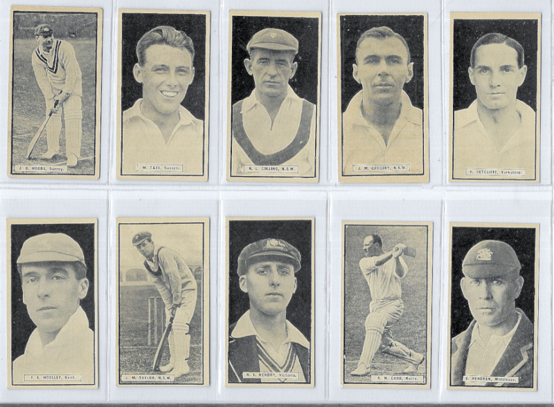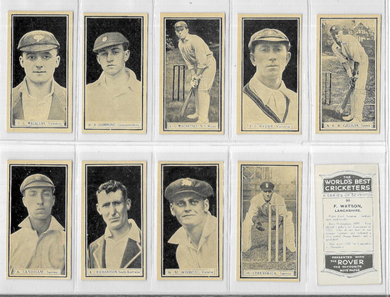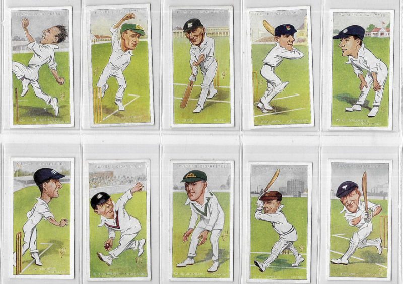 Cricket 1920s/30s sets with Ogden's Cricket 1926 (excellent), Player Cricketers Caricatures by ‘Rip' (good to excellent), and D.C. Thomson The World's Best Cricketers 1932, black backs (mostly excellent, a few good/VG). (132)