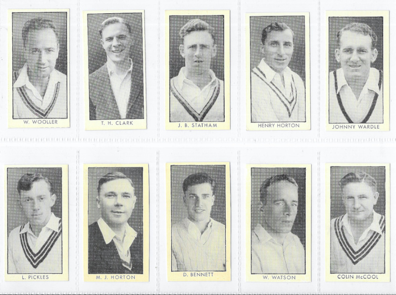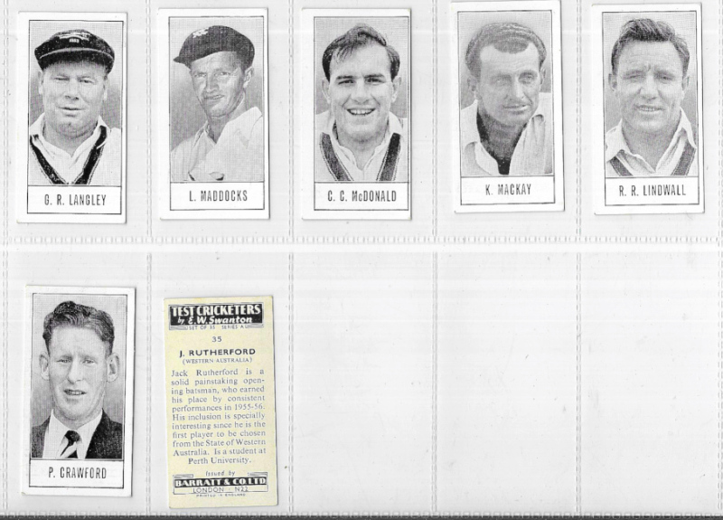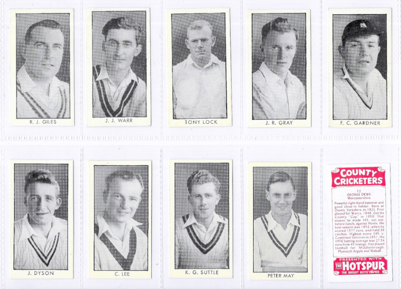 Cricket sets comprising Barratt Test Cricketers ‘A' Series 1956, D.C. Thomson County Cricketers 1958 (plus a duplicate card), and Wills Cricketers 2nd series. Also a modern trade card set. Fine throughout. (154)