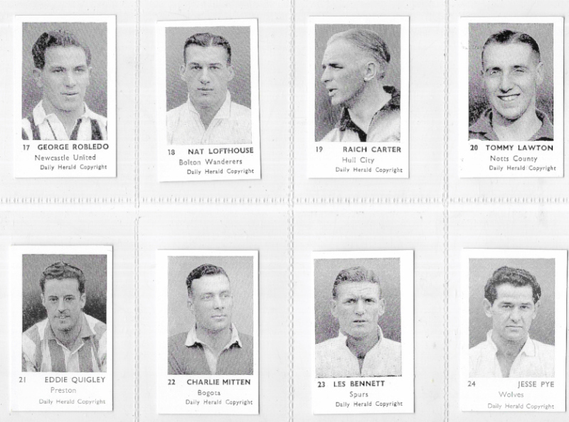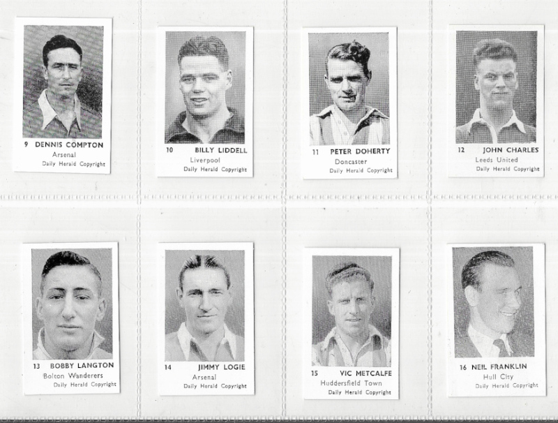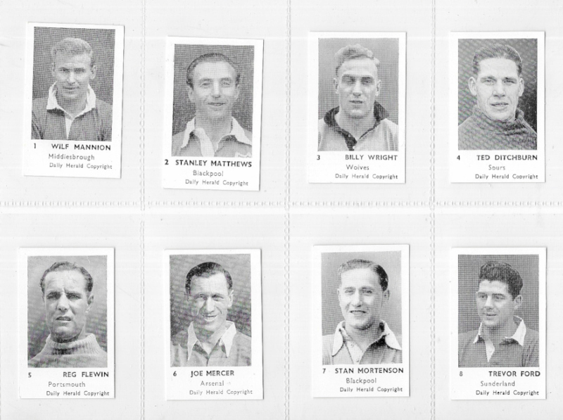 Daily Herald Footballers 1954, the fine set of 32 including Matthews, Mannion, Billy Liddell, John Charles, Charlie Mitten etc. Plain backs. (32)