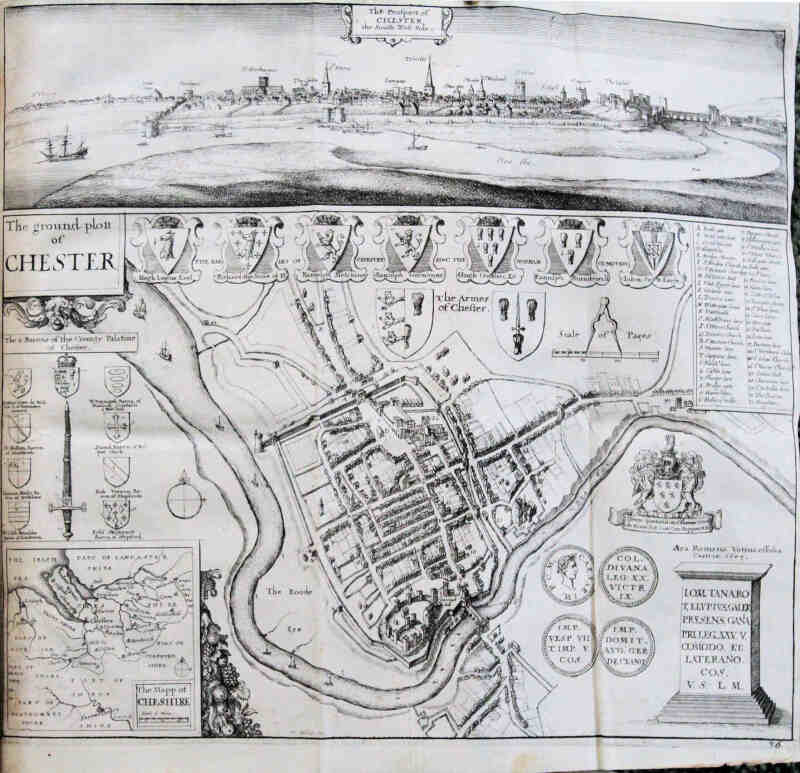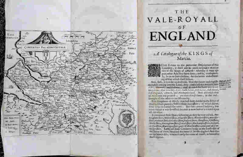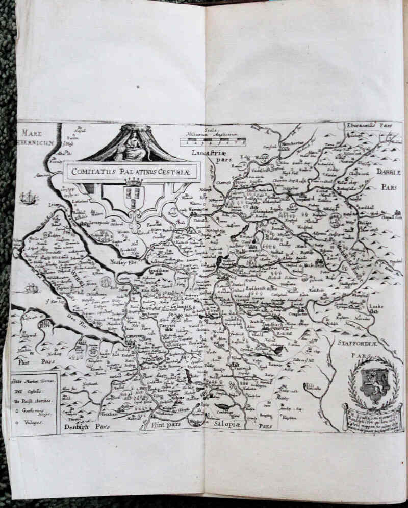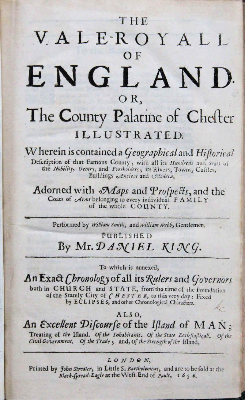 [Daniel King] The Vale-Royal of England, or, The County Palatine of Chester Illustrated, Daniel King, Chester 1656, bound with James Chaloner A Short Treatise of The Isle of Man, Daniel King, 1656; later full panelled calf, gilt title, raised bands; complete with 20 plates (three in text) and three folding maps. Occasional minor contemp. annotations o/w fine. Tall octavo (28 x 18.5cm).