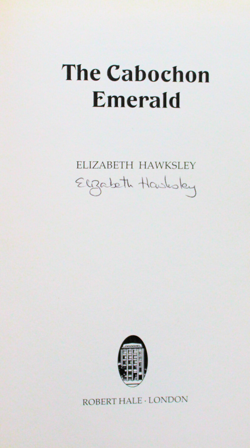 Elizabeth Hawksley "The Cabochon Emerald" Robert Hale 1997, first edition, signed by the author on title page and additionally inscribed by her