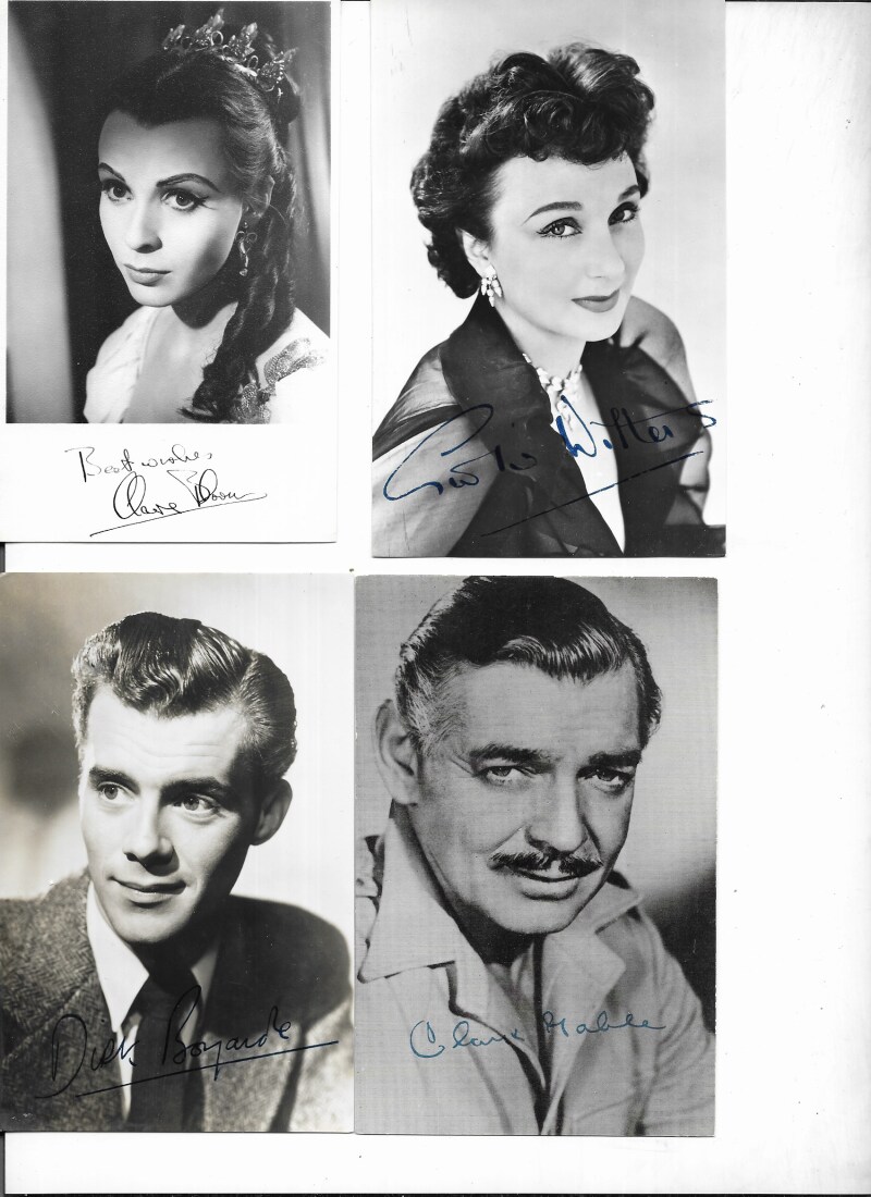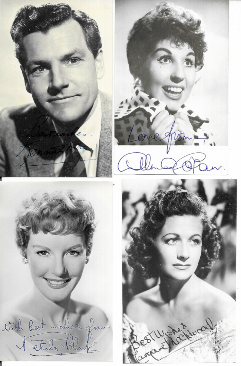 Entertainers' photos, mostly PC size, all with facsimile autographs, plus few unsigned. Many well-known names. (66)