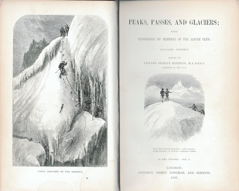E.S. Kennedy (Ed.) Peaks, Passes, and Glaciers; being Excursions by Members of the Alpine Club, Second Series London, 1862, 2 Volumes,first edition, contemporary half-leather, worn, over marbled boards; 13 (of 14) fine folding maps, plus plates. Clean interiors