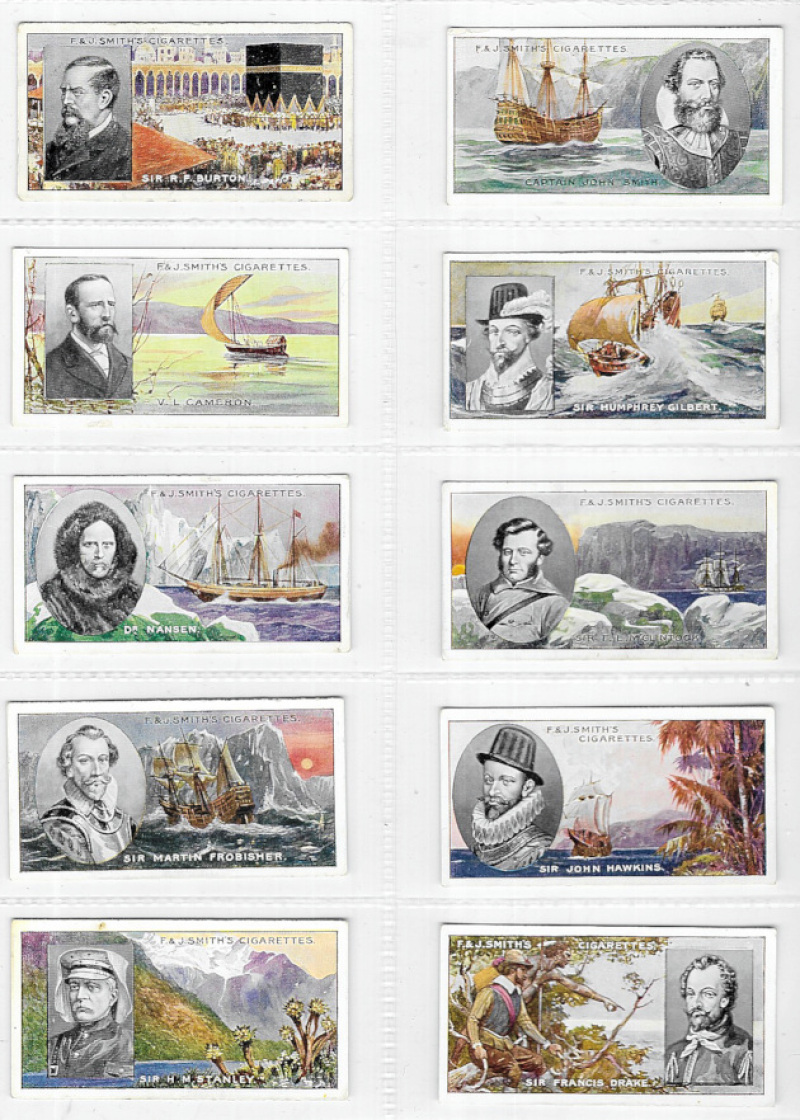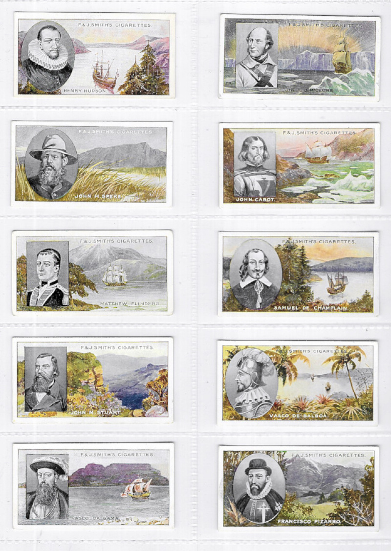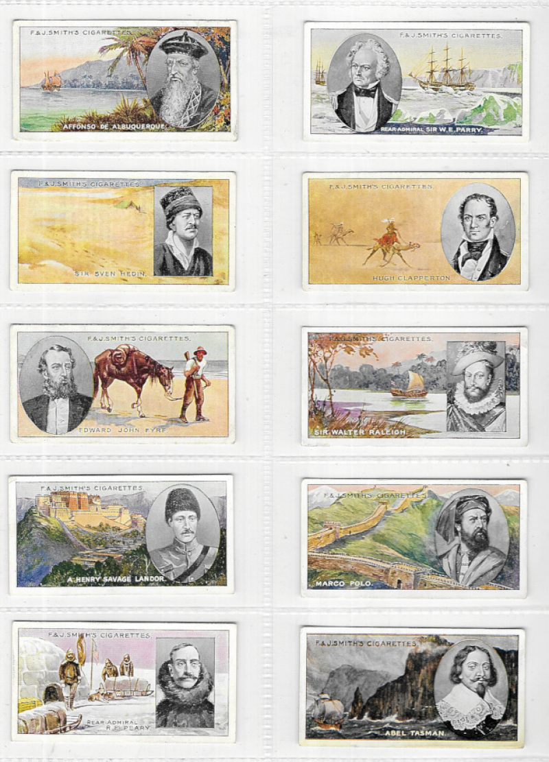 F. & J. Smith Famous Explorers 1911, the set of 50, VG to VF, 11 showing slight wear in borders, 6 with slight tone marks on backs. A scarce set.