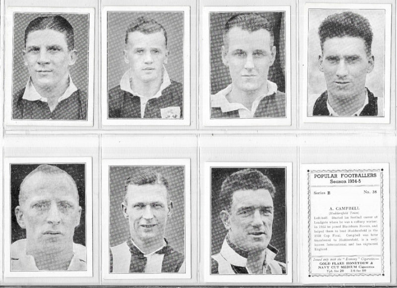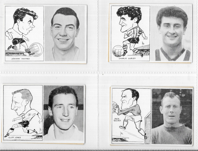 Football collection in two modern albums with many sets including Churchman Footballers (coloured, 1914, card #19 stained), R. & J. Hill Popular Footballers series B, Wills Association Footballers 1939, Chums Football Teams 1922, Player's Footballers Caricatures by ‘RIP', National Spastics Famous Footballers, Mitchell Scottish Football Snaps, Phillips Soccer Stars, Leaf Brands Footballers 1961, Kane Products International Football Stars, D.C. Thomson Famous Footballers 1955, and Golden Wonder World Cup Soccer All Stars. Largely good to VF, many excellent. Cat (Murray) £2160. Also some modern trade cards & oddments.