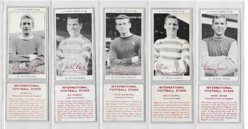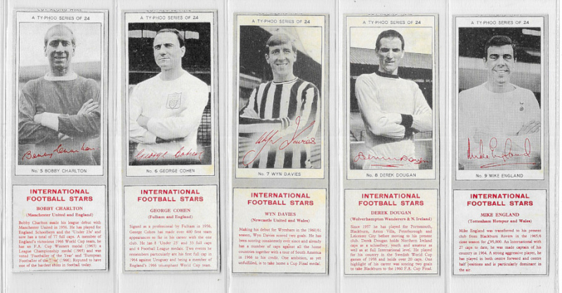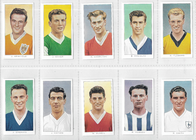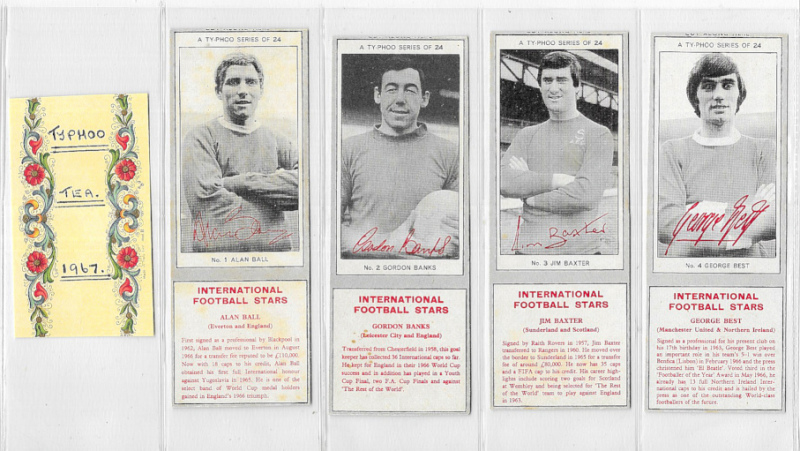 Football sets (13) in modern album, 1948 to modern, including Typhoo International Football Stars 1967 (package set of 24, full length); Kellogg International Soccer Stars 1963; Carreras ‘Turf' Footballers (mixed condition, #1 poor); Rothmans Football International Stars; and Esso Squelchers (2 sets). Most in excellent condition. (330)