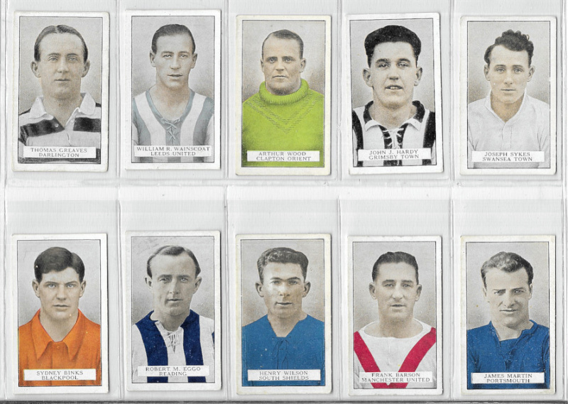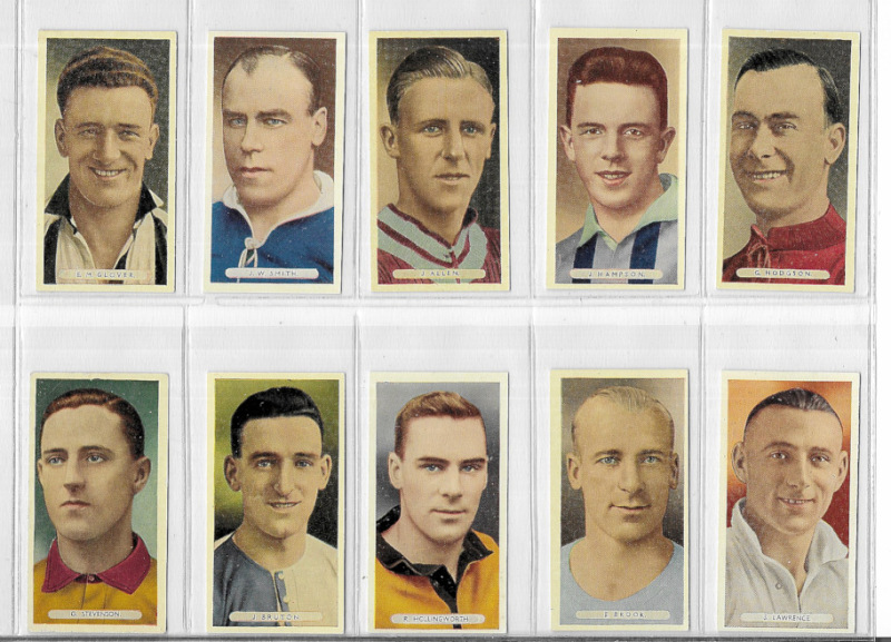Football sets 1920s to 1950s in modern album, including Adolph Famous Footballers 1st and 2nd series; Player Association Cup Winners, Footballers 1928-29 and Footballers Caricatures by RIP; sets by Pals, Gem Library, Boys' Magazine and Boys' Friend; Ardath Famous Footballers; D.C. Thomson This Year's Top-Form Footballers; Churchman Association Footballers 1st & 2nd; Gallaher Famous Footballers (brown back), and Carreras Popular Footballers. Good to excellent, mostly VG or better. Cat (Murray) £1175. (530).