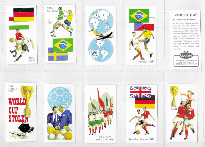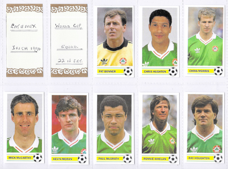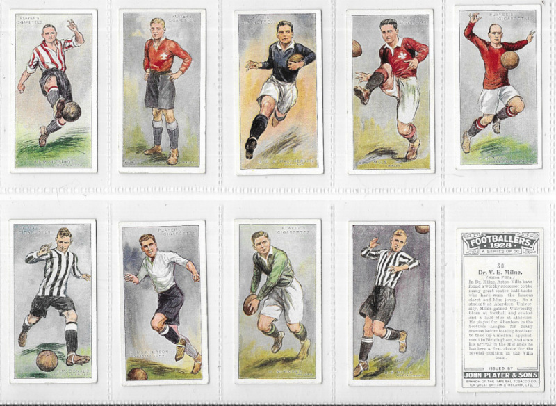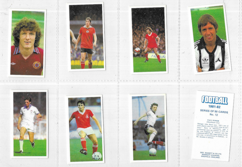 Football sets in two albums with many trade cards; includes Tonibell England's Soccer Stars and Team of All Time; Bassett Football 1981-82; News Chronicle sets for Manchester City, Birmingham City, Stockport Co., and Everton (both sets); Gateaux World Cup Squad (Irish) 1990; and Goodies World Cup 74. Together with four sets of cigarette cards including Player's Association Cup Winners, Footballers 1928 and Footballers 1928-29. The trade cards excellent, the cigarette cards VG/Fine.