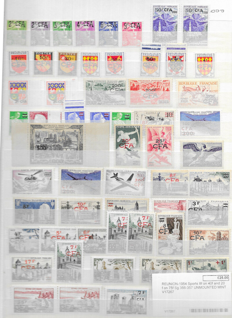 France late-1930s to 1950s UM ranges in s/book with VG Reunion including SG 332 and many other better, and good France incl. SG 1253-1258.