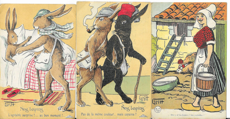 France WWI period collection in old album with many pretty ladies in sets/series, topography & social history, few comic etc. Also few cards from UK & elsewhere. VG/Fine (180)