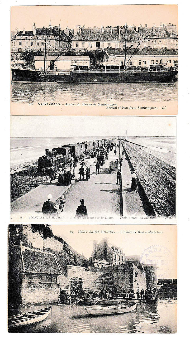 French topography comprising views of Saint-Malo, Mont St. Michel and area, largely pre-1930. Includes 2 booklets. VG/VF (63)