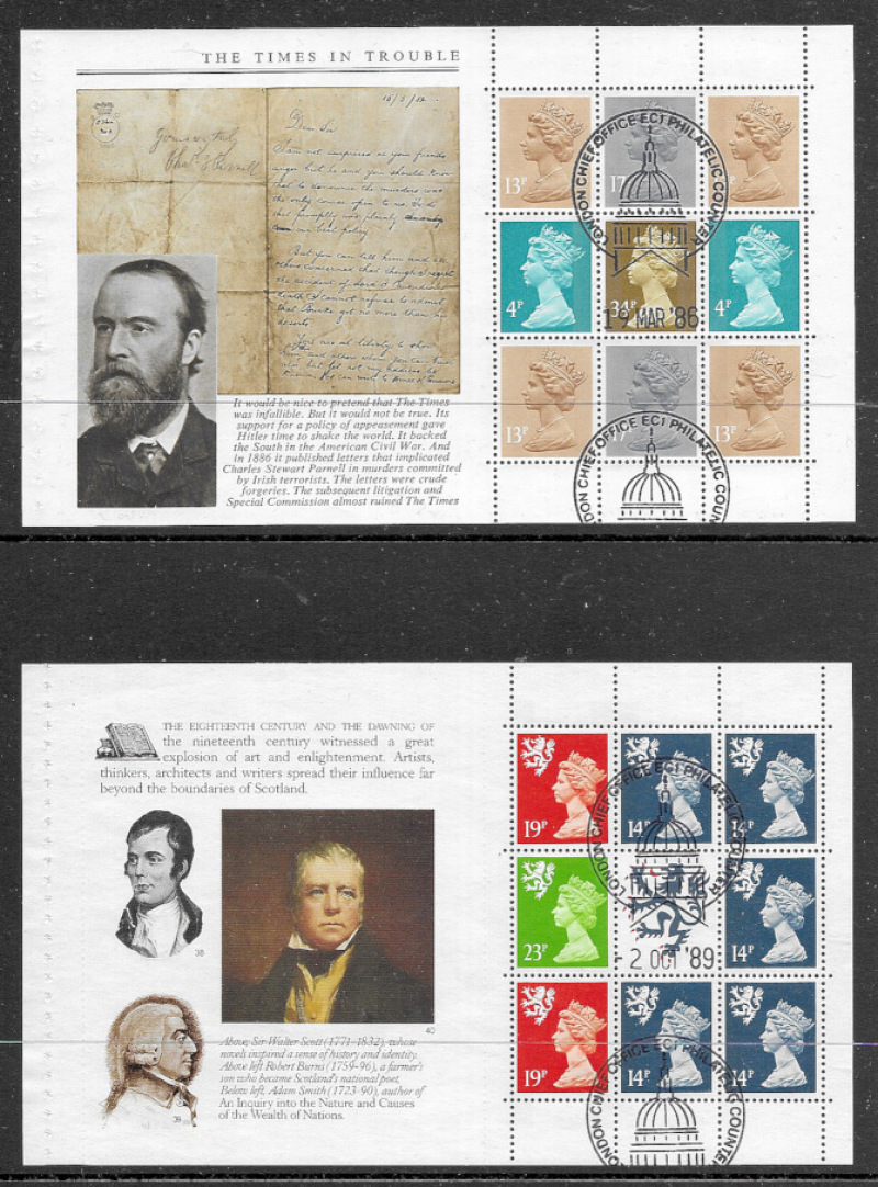 GB Illustrated FDCs in four albums, plus several FU booklet panes and other items. Includes better Benham silks. Some mixed quality. (300+)