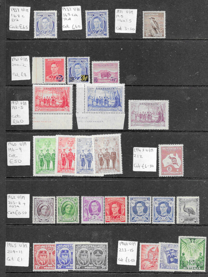 George VI C/Wealth mint or UM ranges on stockcards with interest in Australia (all UM, Cat £310), Solomon Is, Leeward Is to 2s (2),