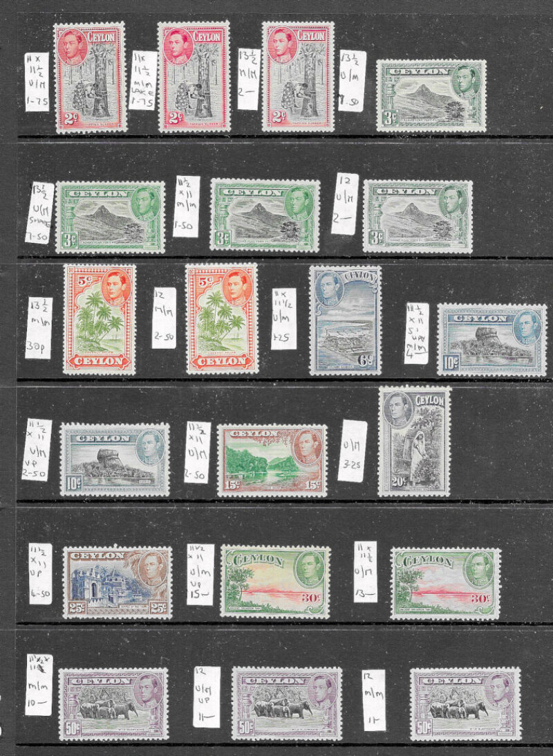 George VI C/Wealth mint or UM ranges on stockcards with interest in Australia (all UM, Cat £310), Solomon Is, Leeward Is to 2s (2), Ceylon, Malacca and few others. STC £2209.